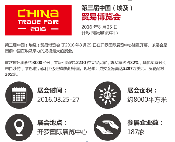 ?2016年,埃及是中國全球第47大貿(mào)易伙伴,非洲第3大貿(mào)易伙伴;