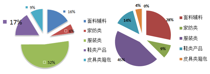 2015年中國向波蘭出口的113.30億美元的紡織服裝類產(chǎn)品中,面料輔料類產(chǎn)品占5.34億,家紡類產(chǎn)品占2.07億,服裝類產(chǎn)品占17.01億,鞋類產(chǎn)品占5.37億,皮具類箱包占2.81億,可以看出中國向波蘭出口的產(chǎn)品還是以服裝類為主。