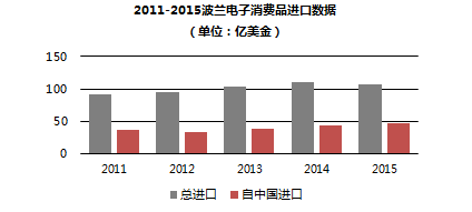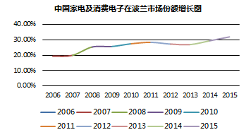 中國(guó)的家電及電子消費(fèi)品在波蘭進(jìn)口占比中逐年上升,2015年已達(dá)到進(jìn)口的32.02%。