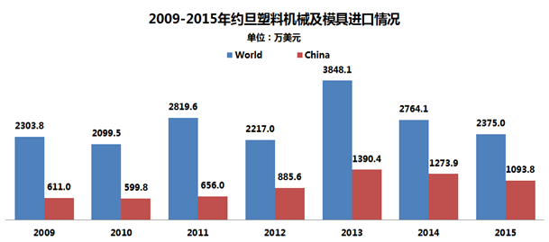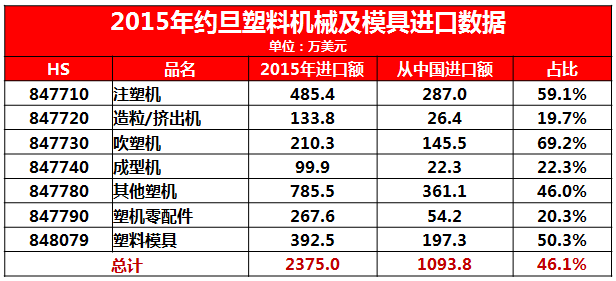 約旦的塑料機械市場已具有一定規(guī)模,2015年進口額達到2375萬美元