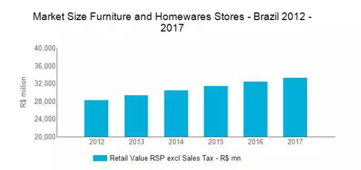 圖表:2012-2017年巴西家具家居商店增長趨勢(圖)