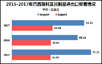 巴西是塑料貿易大國,2017年塑料及其制品的進出口貿易額達到101.9億美元。巴西是全球主要的塑料生產國之一,每年都要出口大量的塑料制品至大西洋和太平洋沿岸國家和地區(qū),2017年出口額高達36.6億美元,排名前三的出口國分別是阿根廷、美國和智利。同時,巴西本身是塑料消費大國,雖然本國的塑料加工業(yè)已經(jīng)初具規(guī)模,但受到品種、價格、產能等因素的限制,每年依舊要從海外進口大量的塑料產品,2017年進口額高達65.3億美元,而美國和中國是兩大進口來源國。雖然巴西是塑料消費大國,但就巴西超過2億的人口而言,其國內塑料市場的人均塑料使用率仍然很低,人均消費塑料約為35公斤/人,雖高于全球平均水平的26kg /人,但遠遠低于發(fā)達國家(約100公斤/人)的水平。