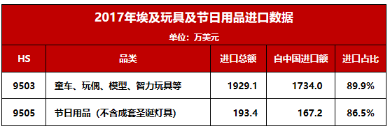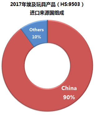 2017年埃及玩具產(chǎn)品進(jìn)口規(guī)模達(dá) 1929.1萬美元,同比2016年增長 16.2%;其中自中國進(jìn)口額為 1734.0萬美元,同比2016年增長 11.6%;埃及自中國進(jìn)口的玩具產(chǎn)品占比近 89.9% 。