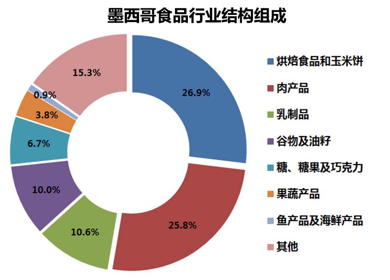 根據(jù)墨國家統(tǒng)計局的數(shù)據(jù),2015年前10個月,墨西哥食品加工工業(yè)產(chǎn)值1萬億比索(1美元約合16.8比索),占國內(nèi)生部總值的4.6%,與上年相比增長3%。