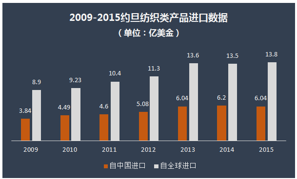 ?約旦及周邊相鄰的國(guó)家(沙特阿拉伯、埃及、伊拉克、黎巴嫩、巴基斯坦、敘利亞)紡織進(jìn)口量約130億美元。