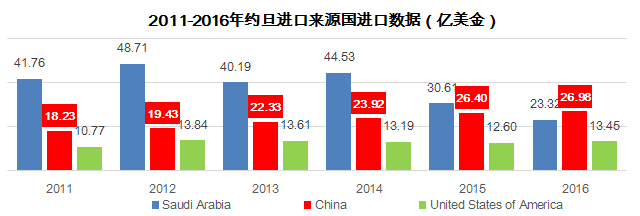 據(jù)約旦國家統(tǒng)計局?jǐn)?shù)字,2016年約旦總進(jìn)口額為192.61億美元,同比下降了5.92%;