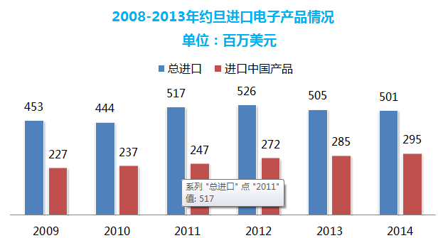 中國是約旦電子產(chǎn)品最大進(jìn)口來源國,占其總額59%