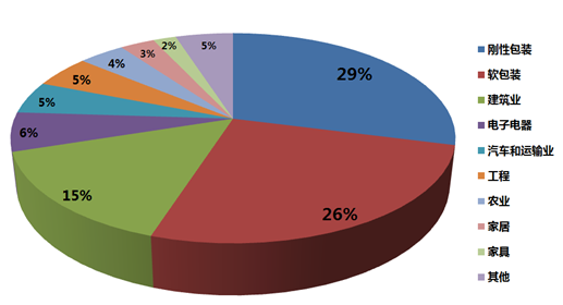 4、包裝行業(yè)是南非塑料主要的應用市場,占比達到55%,其實是建筑業(yè)(15%)。