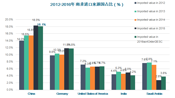 ?2016年南非貨物進(jìn)出口額為1518億美元,其中,中國與南非雙邊貨物進(jìn)出口額為204億美元;