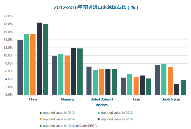 ?2016年南非貨物進(jìn)出口額為1518億美元,其中,中國(guó)與南非雙邊貨物進(jìn)出口額為204億美元;